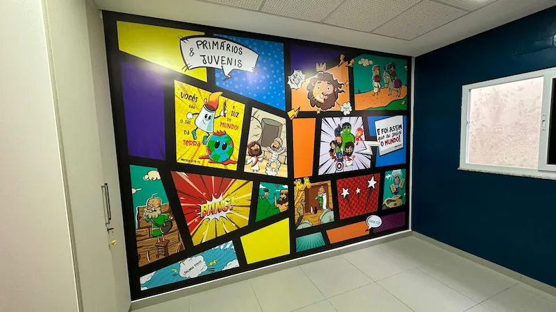 Ideal para vitrines, fachadas, paredes e ambientes corporativos